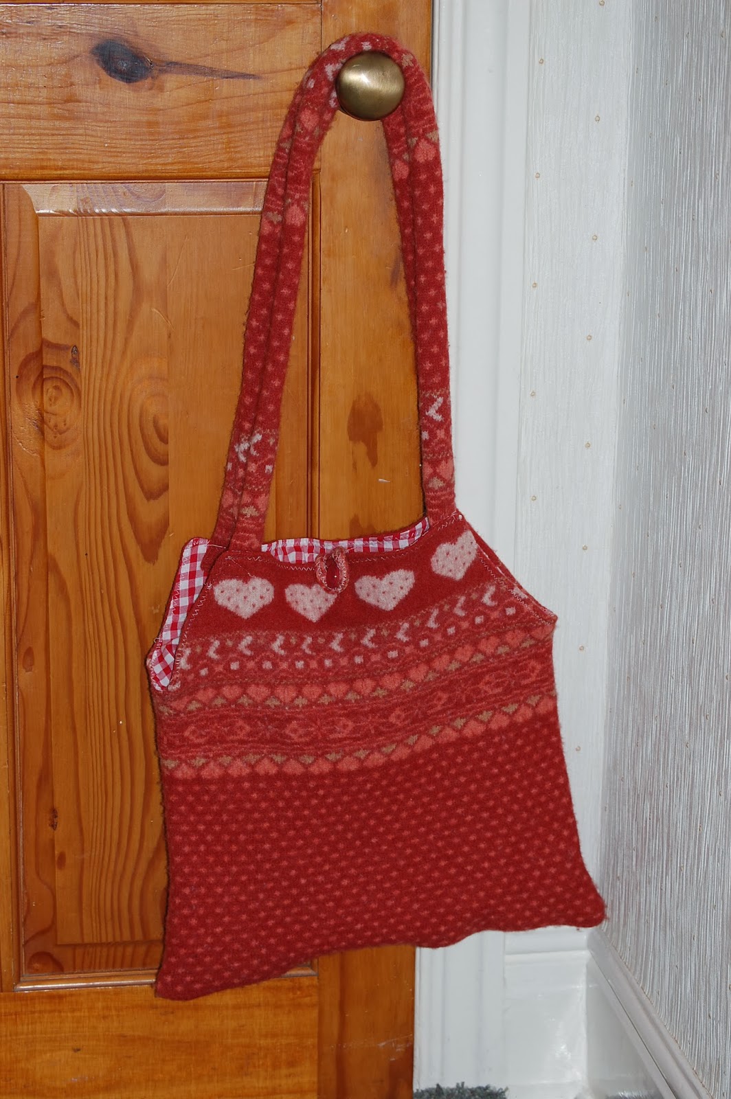 My daughter said 'Can you do anything with this?' This being a favourite jumper that had shrunk in the wash. So today a jumper became a bag. My daughter was very pleased it.